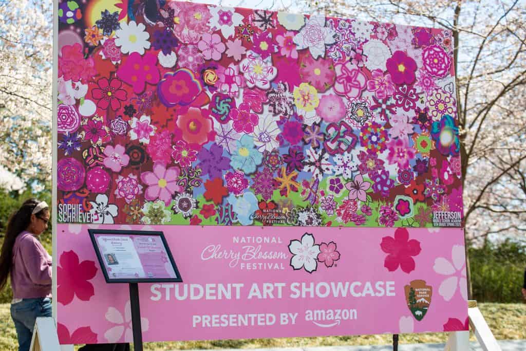 Presentado por Amazon, el Festival Nacional de Arte Estudiantil del Festival de los Cerezos en Flor mejora la creatividad, la colaboración y el espíritu comunitario entre los estudiantes de K-12 de las escuelas públicas, chárter y japonesas de DC. El programa conecta a ocho artistas locales que dirigirán talleres guiados en ocho escuelas. Estos talleres inspirarán y educarán a los estudiantes sobre diversos medios artísticos, permitiéndoles expresar sus interpretaciones únicas de un tema seleccionado proporcionado por el Festival.