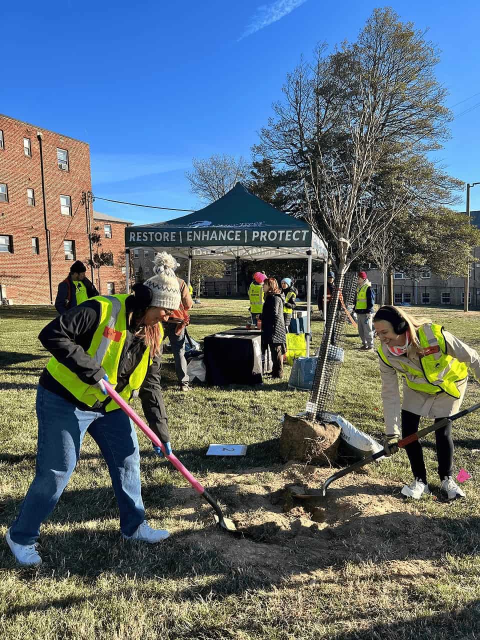Since 2002, the National Cherry Blossom Festival has been committed to further enhancing the natural beauty of Washington, DC by planting new cherry trees in neighborhoods across the city. Annually, the Neighborhood Tree Planting Program collaborates with schools, civic groups, and community groups throughout DC’s eight wards and National Landing in partnership with Casey Trees to plant new trees and educate groups about tree care and maintenance. The Festival has successfully planted hundreds of trees in the District.
